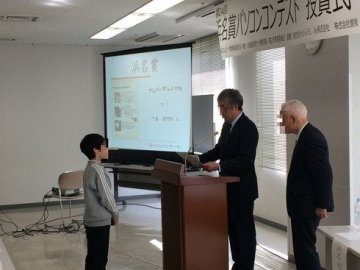 第24回浜名賞パソコン作品コンテスト授賞式が3月4日 とかちプラザにて行われました。 50名程の受賞者及びご家族の方々が参加され、 協賛各社の挨拶と各賞への賞状と賞品の授与が 行われました。 受賞者のインタビューや作品の紹介で盛上ってましたよ!