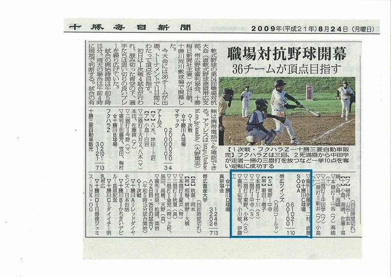 今期初勝利を目指して朝野球の大会に参戦していた曽我野球部ですが、8月24日の職場対抗野球1回戦にて悲願の今期初勝利を納めました。2回戦の結果は・・・聞かないでください。これからも曽我野球部頑張ります!!