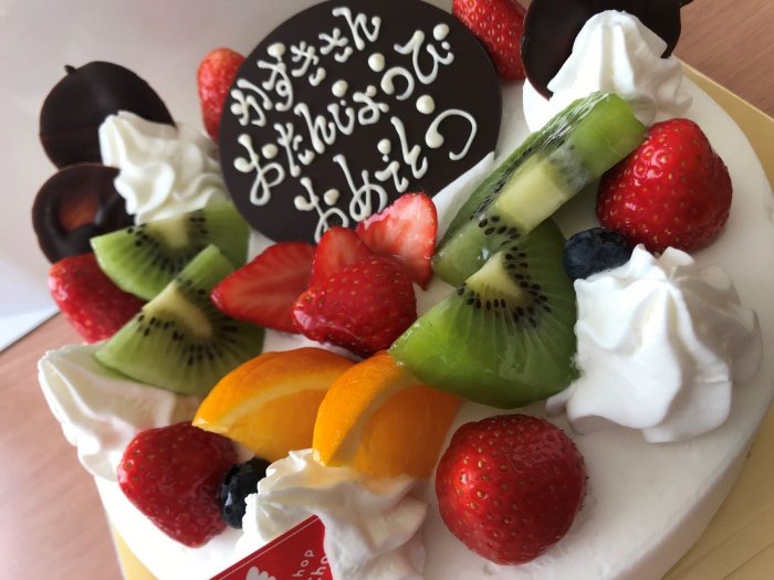 毎年誕生月になると会社からシュシュアンジュさんのワンホールケーキを頂きます。