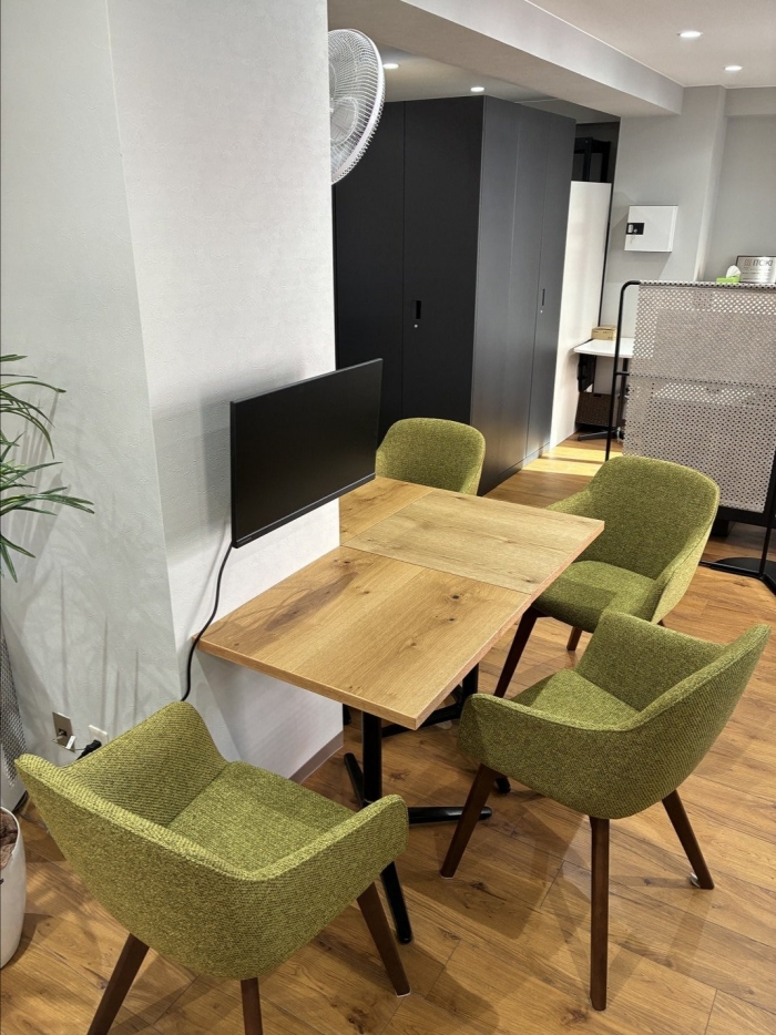 作ってみました。 業務以外にもお客様来客時の商談スペース、社員間の簡単な打ち合わせにも使用しています。