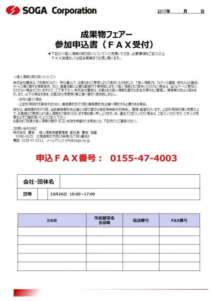 平素はご愛顧を賜り、誠にありがとうございます。 さて、この度は「成果物&セキュリティフェアー」のご案内を申し上げます。 効果的な販売促進ツール作りを体感しませんか? 詳しくは下記パンフレットをご覧ください。 皆様のご来場心よりお待ち申し上げます。 日時 2018年5月23日(水)24日(木) 10:00~17:00 会場 株式会社 曽我1F 多目的ルーム・3F 会議室帯広市15条南28丁目1番地8号