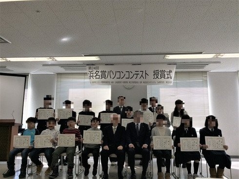 第24回浜名賞パソコン作品コンテスト授賞式が3月4日 とかちプラザにて行われました。 50名程の受賞者及びご家族の方々が参加され、 協賛各社の挨拶と各賞への賞状と賞品の授与が 行われました。 受賞者のインタビューや作品の紹介で盛上ってましたよ!